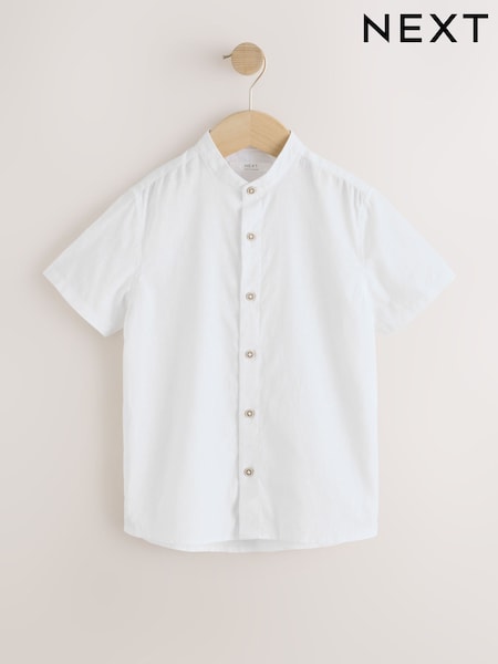 White Short Sleeve Linen Blend Grandad Collar Shirt (3-16yrs)