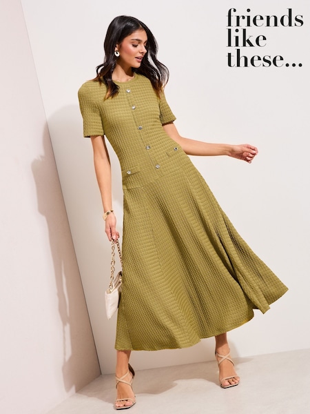 Friends Like These Olive Green Dropped Waist Textured Jersey Maxi Dress