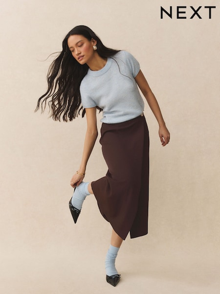 River Island Brown Belted Wrap Pleated Midi Skirt