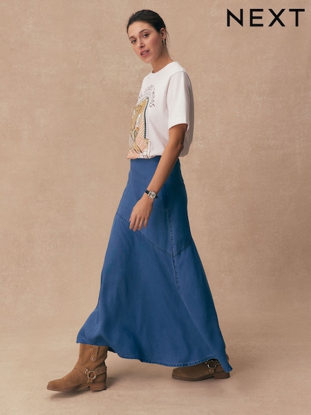 Mid Blue Denim Lightweight Seamed Denim Slip Skirt