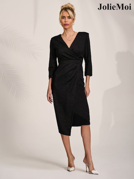 Jolie Moi Black Wrap Bodycon Dress