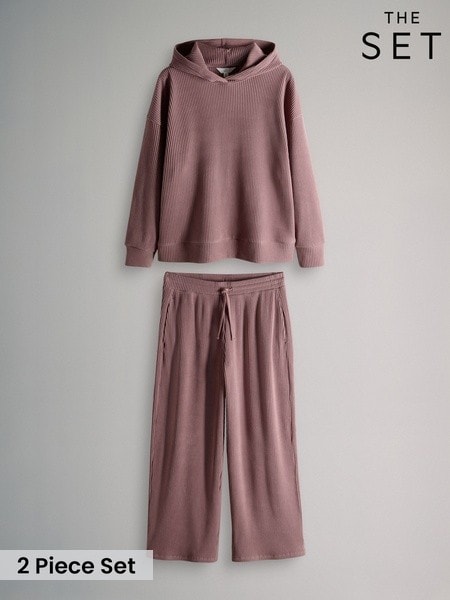 The Set Ribbed Hoodie And Wide Leg Jogger Set Pink