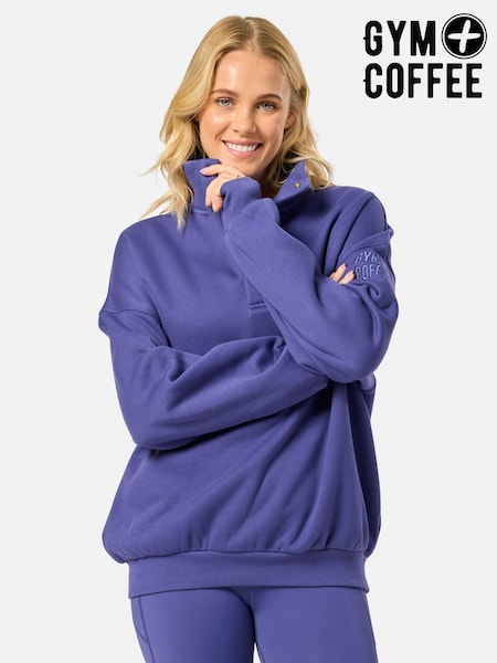 Gym + Coffee Purple Sierra Snap Collar Sweat Top