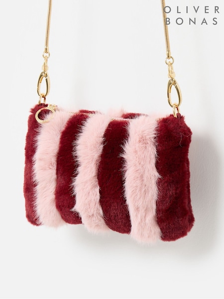 Oliver Bonas Pink Striped Faux Fur Cross-Body Bag