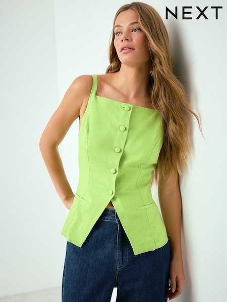 Indigo Denim Look Starfish Detail Waistcoat with Linen
