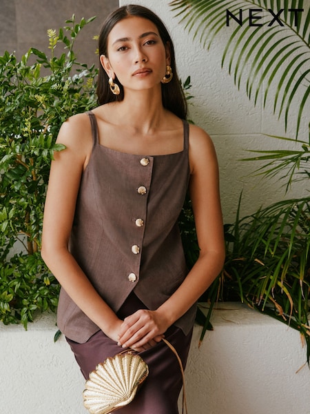 Chocolate Brown Sleeveless V-Neck Textured Waistcoat