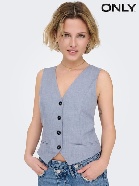Reiss Blue Magda Button-Through Tailored Waistcoat