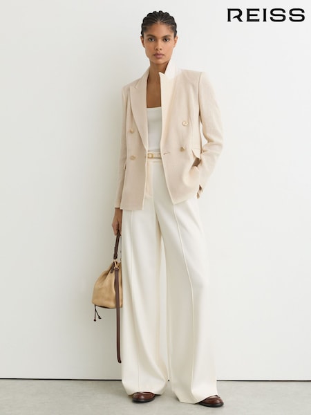 Reiss Cream Fiore Open-Weave Double-Breasted Blazer