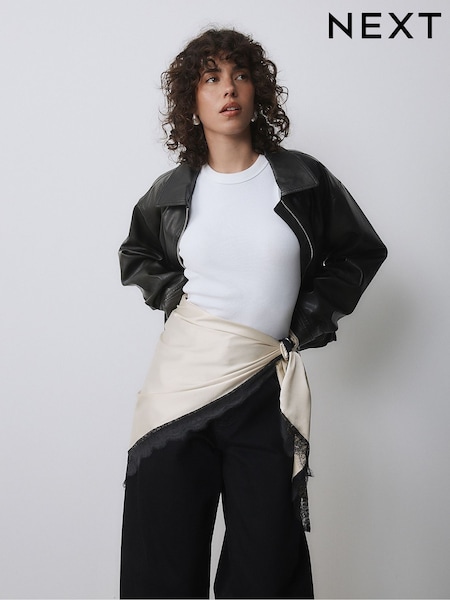 Cream/Black Lightweight Lace Trim Triangle Scarf