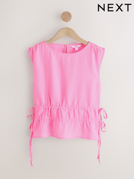Brown/Ecru Gingham Linen Blend Button Shell Top