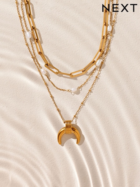 Gold Tone Stainless Steel Waterproof 3 Layer Pendant Necklace