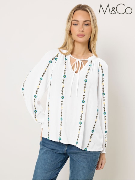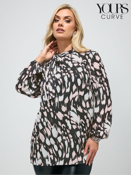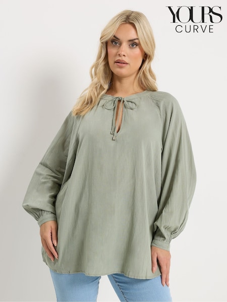 Yours Curve Green Boho Long Sleeve Tie Neck Blouse