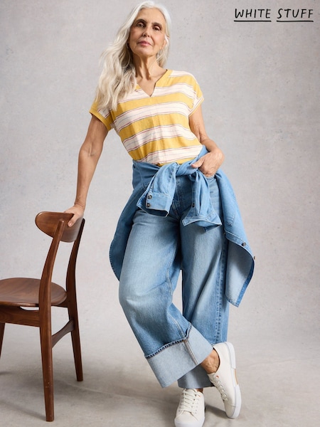 White Stuff Yellow Nelly Notch Stripe T-Shirt