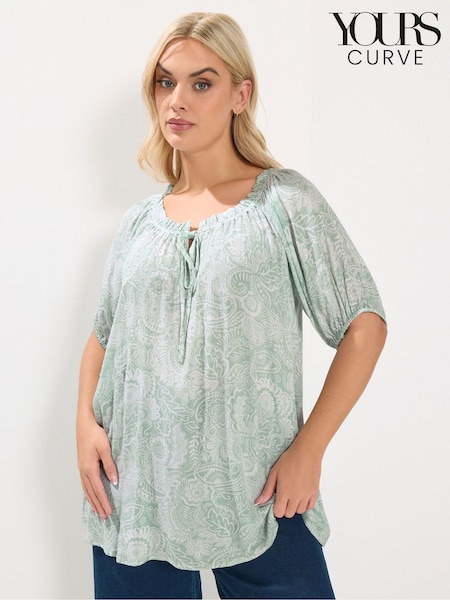Yours Curve Green Boho Bardot Top