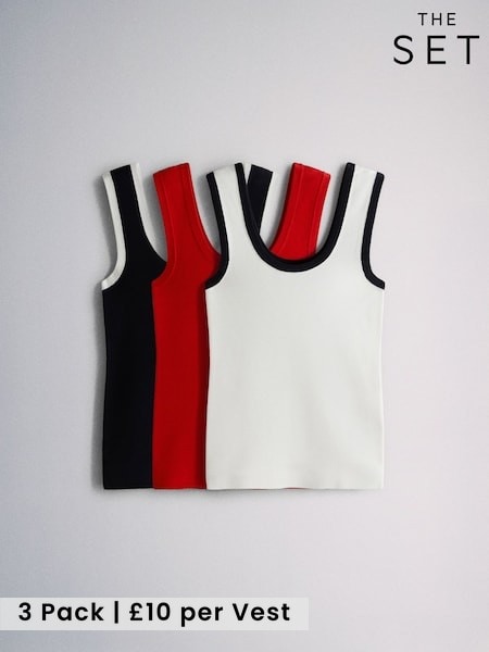 The Set 3 Pack Crew Neck Knitted Vests Tops Navy/Red/Cream