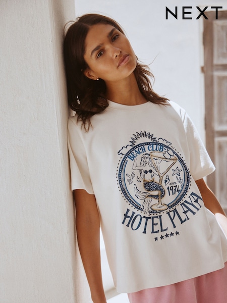 Superdry Cream Luxe Casual Relaxed Fit T-Shirt