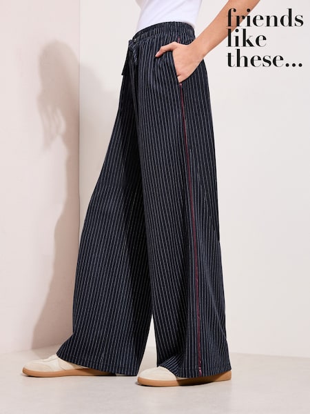 Friends Like These Navy Pinstripe Elasticated Waist Wide Leg Trousers