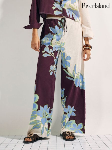 River Island Cream Floral Print Wide Leg Trousers