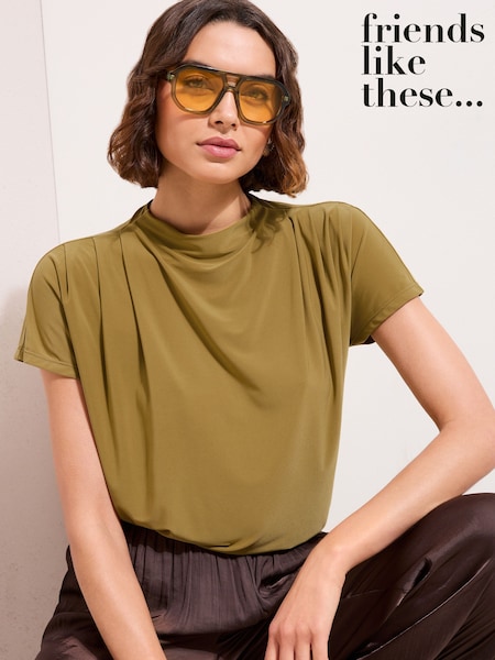 Friends Like These Khaki Green Long Sleeve Tie Side Cowl Blouse