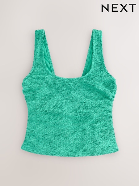 Aqua Green Crinkle Scoop Neck Tankini Top
