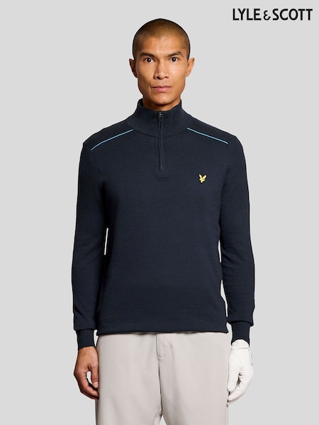 Lyle & Scott Blue Golf Tipped Quarter Zip Jumper