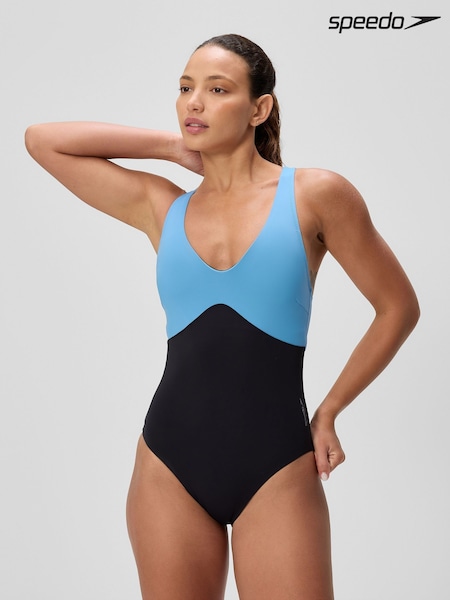 Speedo Black Colorblock Splice 2.0 One Piece Swimsuit