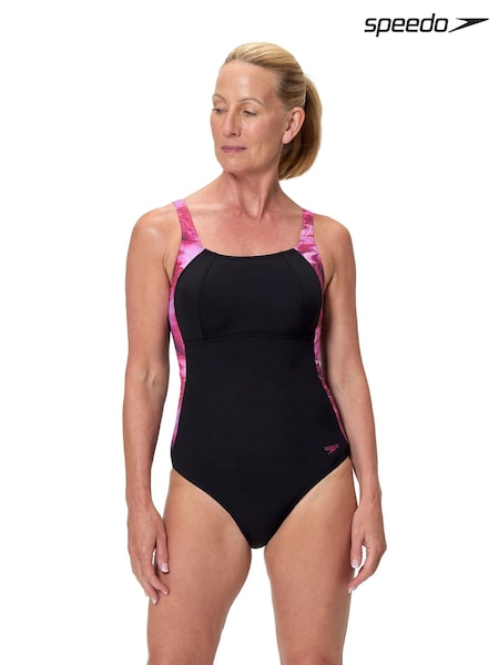 Speedo Black Printed V-Back 2.0 Swimsuit