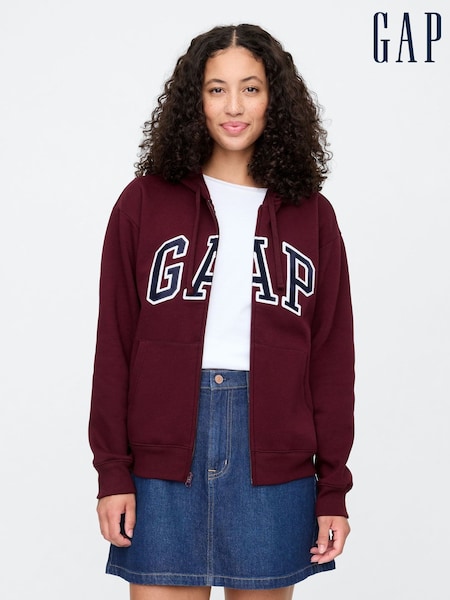 Gap Burgundy Red Relaxed Logo Zip Hoodie