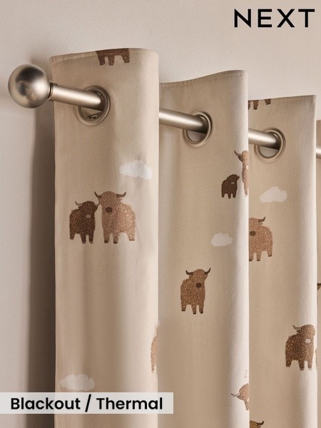 Natural Hamish The Highland Cow Blackout Thermal Eyelet Curtains